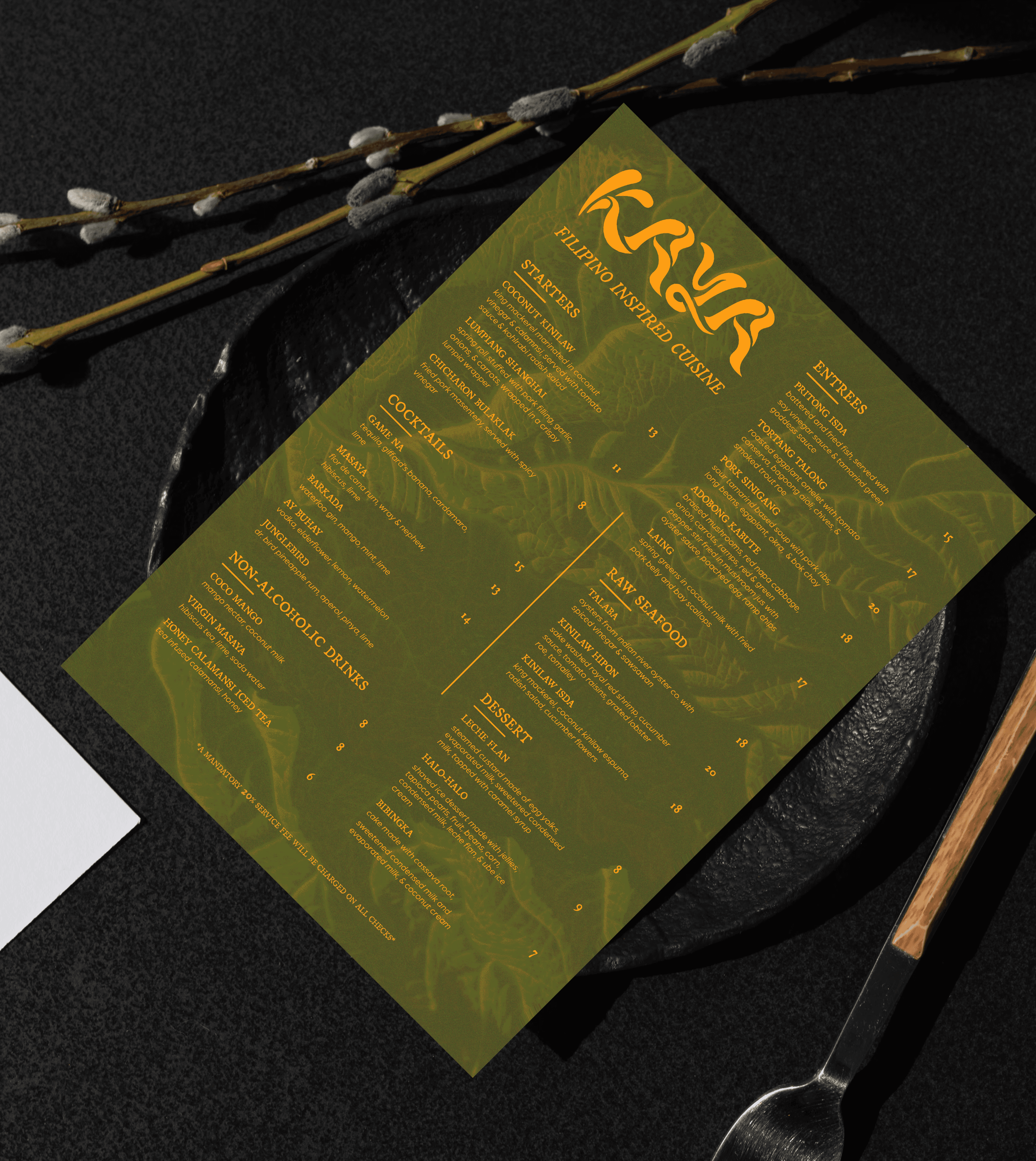 KAYA is a logotype rebrand project for a Michelin-star Filipino restaurant that offers a refined take on traditional cuisine. Inspired by items students brought from home, the challenge pushed us to explore organic forms and unconventional materials to create a visual identity. I chose KAYA for its commitment to fresh, local ingredients and innovative techniques that elevate classic Filipino dishes for both authentic and adventurous diners.