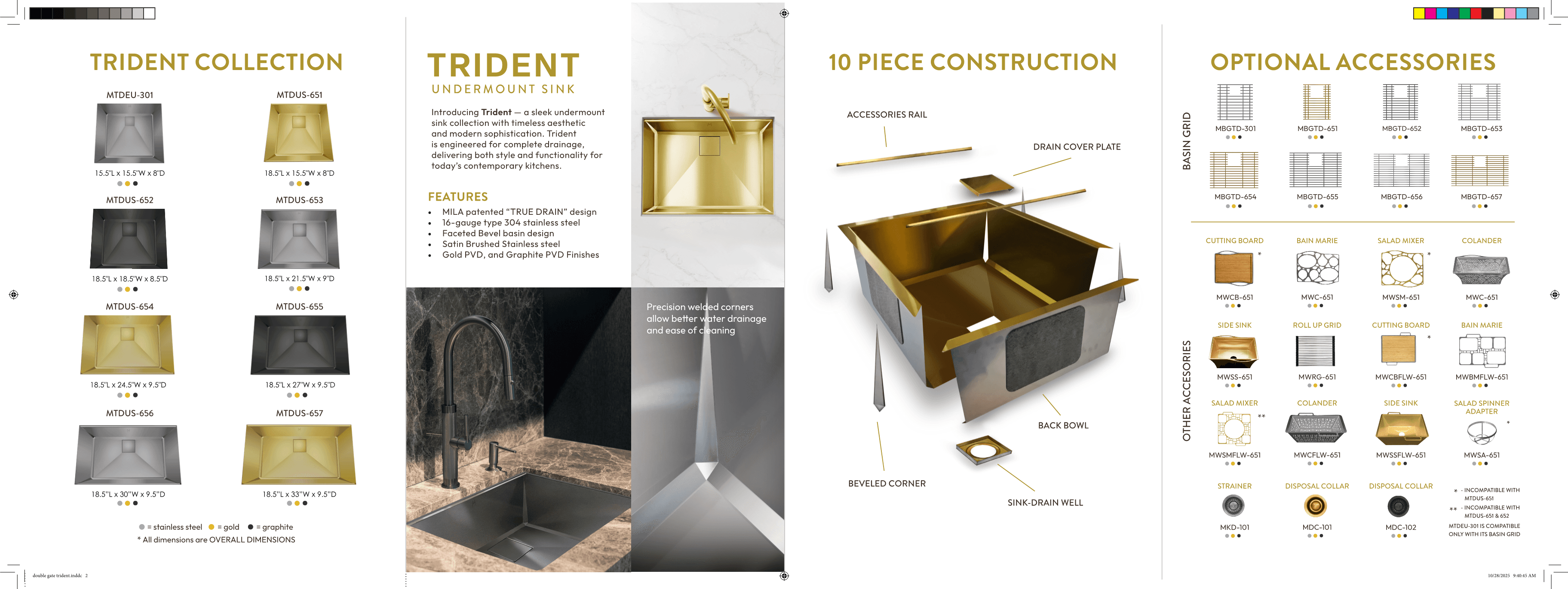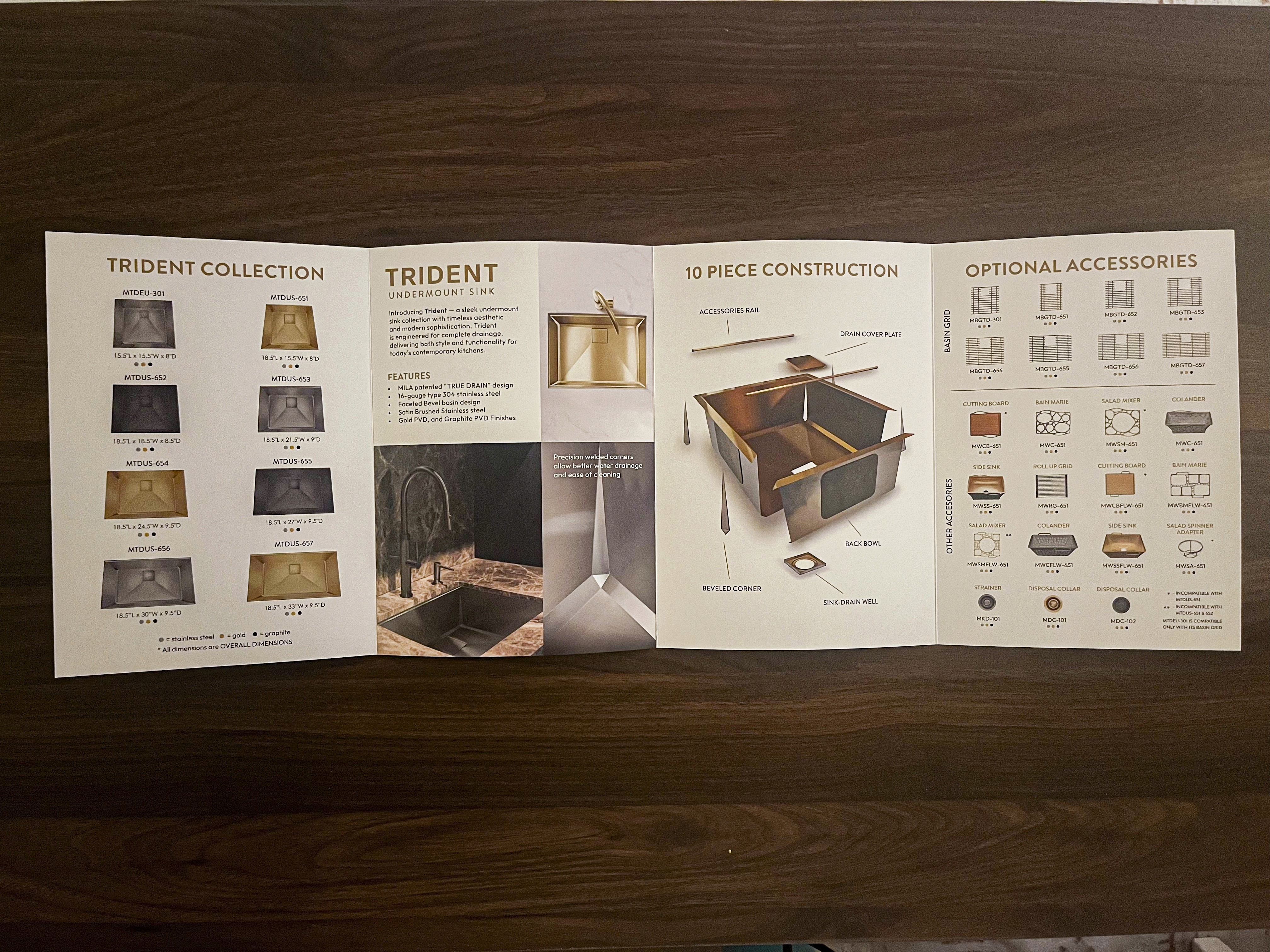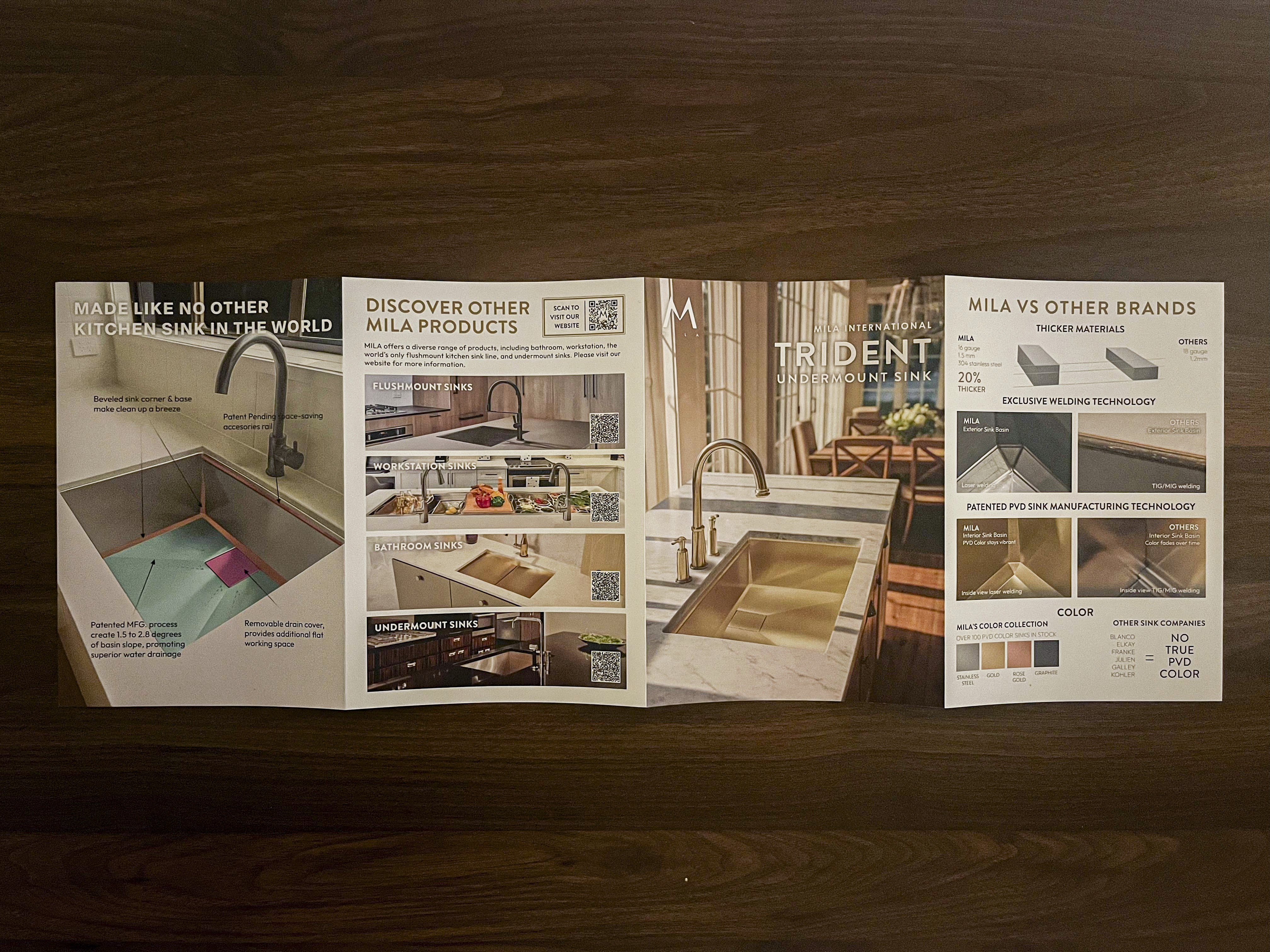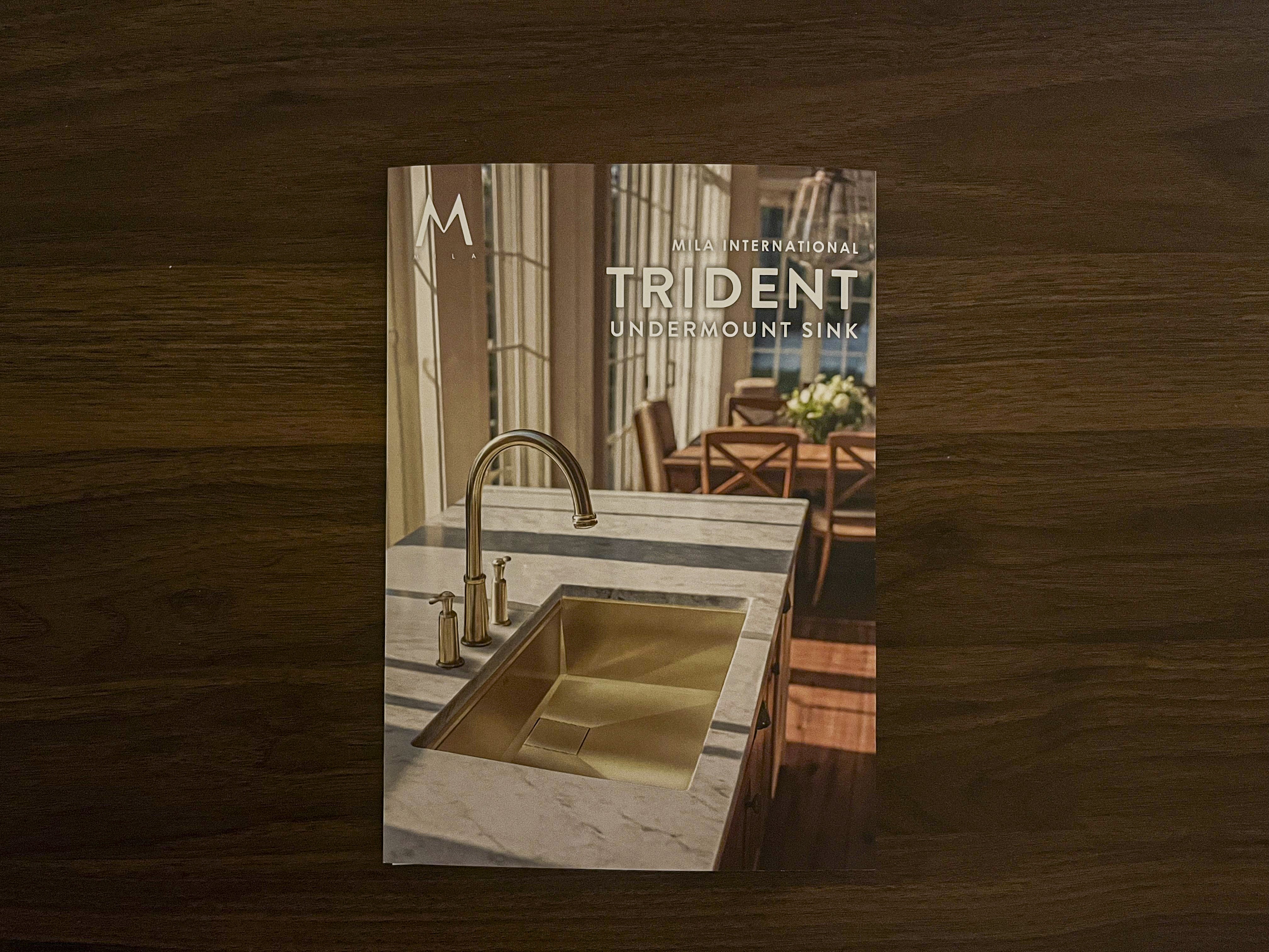 Designed a double gate brochure for our new Trident sink series, created to clearly showcase what sets the collection apart. This brochure is used across showrooms, events, and dealer networks to communicate key product details, pricing, and the unique design features that define the series.